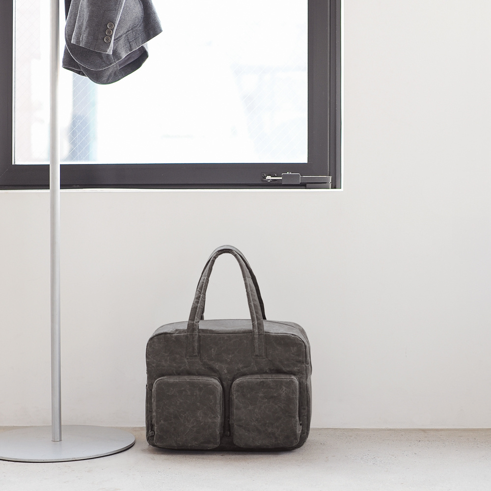 ビジネスのシーンで活躍する「ブリーフケース」のシルエットをそのままに、短期の旅行や出張にもお使いいただける大容量バッグを作りました。容量は24リットル。書類や仕事のあれこれのモノに加えて旅の荷物や、ジムの着替えやシューズもしっかり入る容量のバッグを「SIWA」の素材を使って作りました。