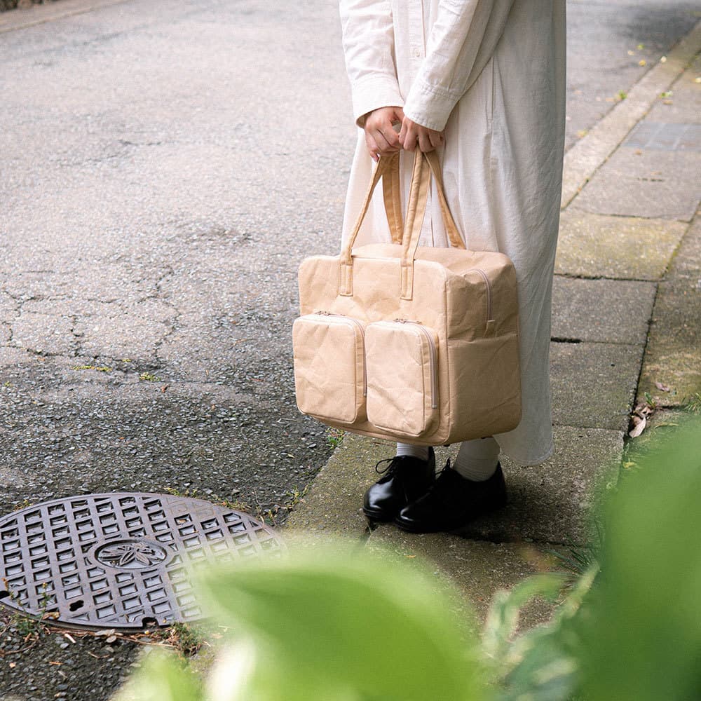 手触りが優しく、耐久性があって、水にも強い。それが新しい和紙、ナオロンで出来た「SIWA バッグ」の特徴。雨になってもへっちゃらで、耐荷重10キログラムと、重いものもしっかり持ち運ぶことができる、あなたの毎日の生活でお役に立つことができるバッグです。
