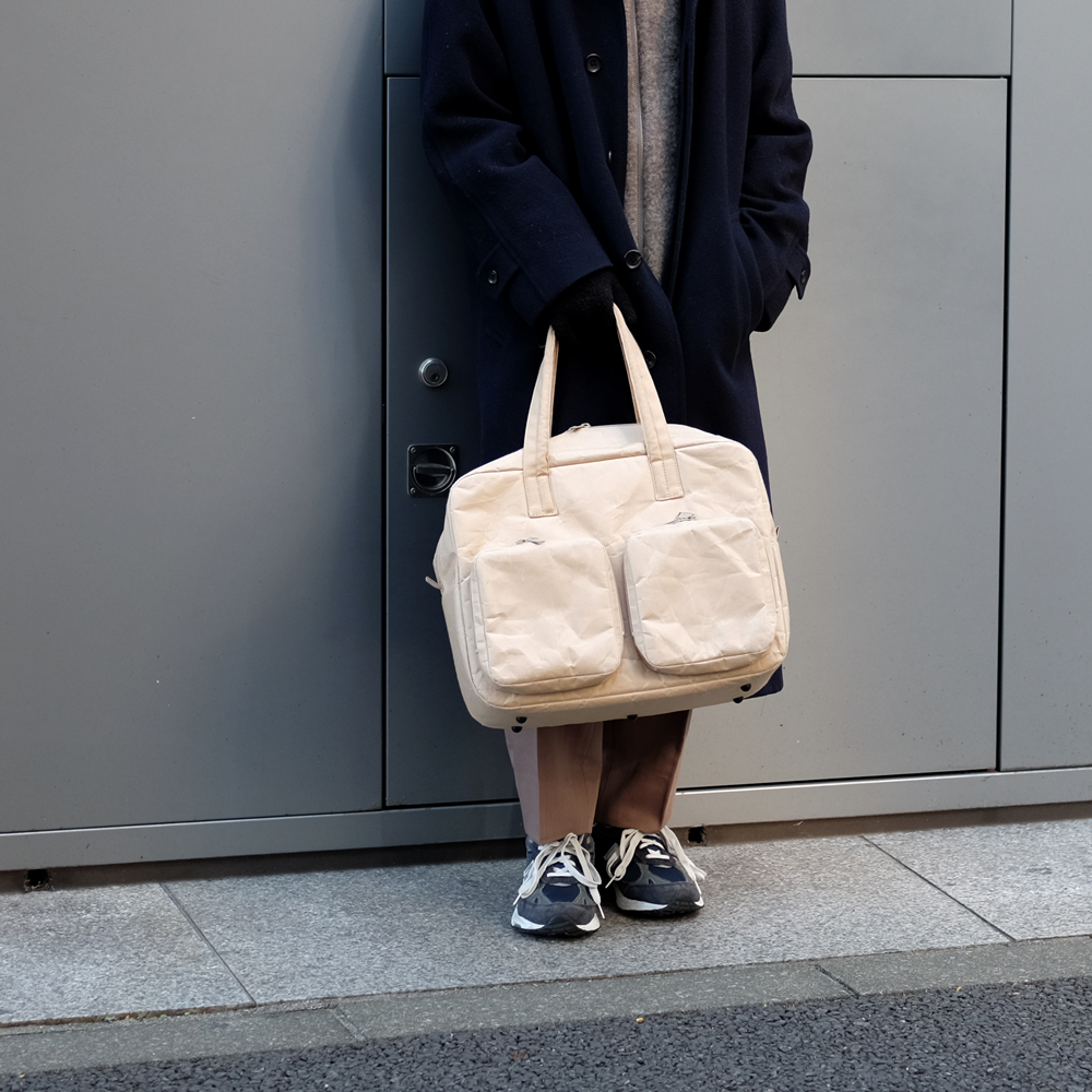 そしてその強度は、なんと耐荷重5キロから10キログラム。実際にこのサイズのバッグに10キログラムのモノを入れると持ち上げるのも大変なくらいですが、重量のある書籍や資料の携帯も可能な安心感です。