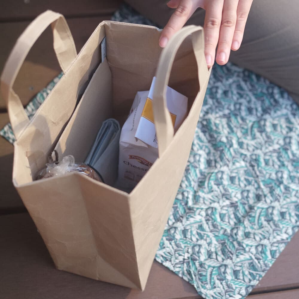 Small size of SIWA's basic model, Bag Square M.It can be used to store items you want to keep close by at all times, or as a sub-bag for a packed lunch, tumbler, etc.Weighing just 80g, it can be folded and stored in a larger bag when not in use.