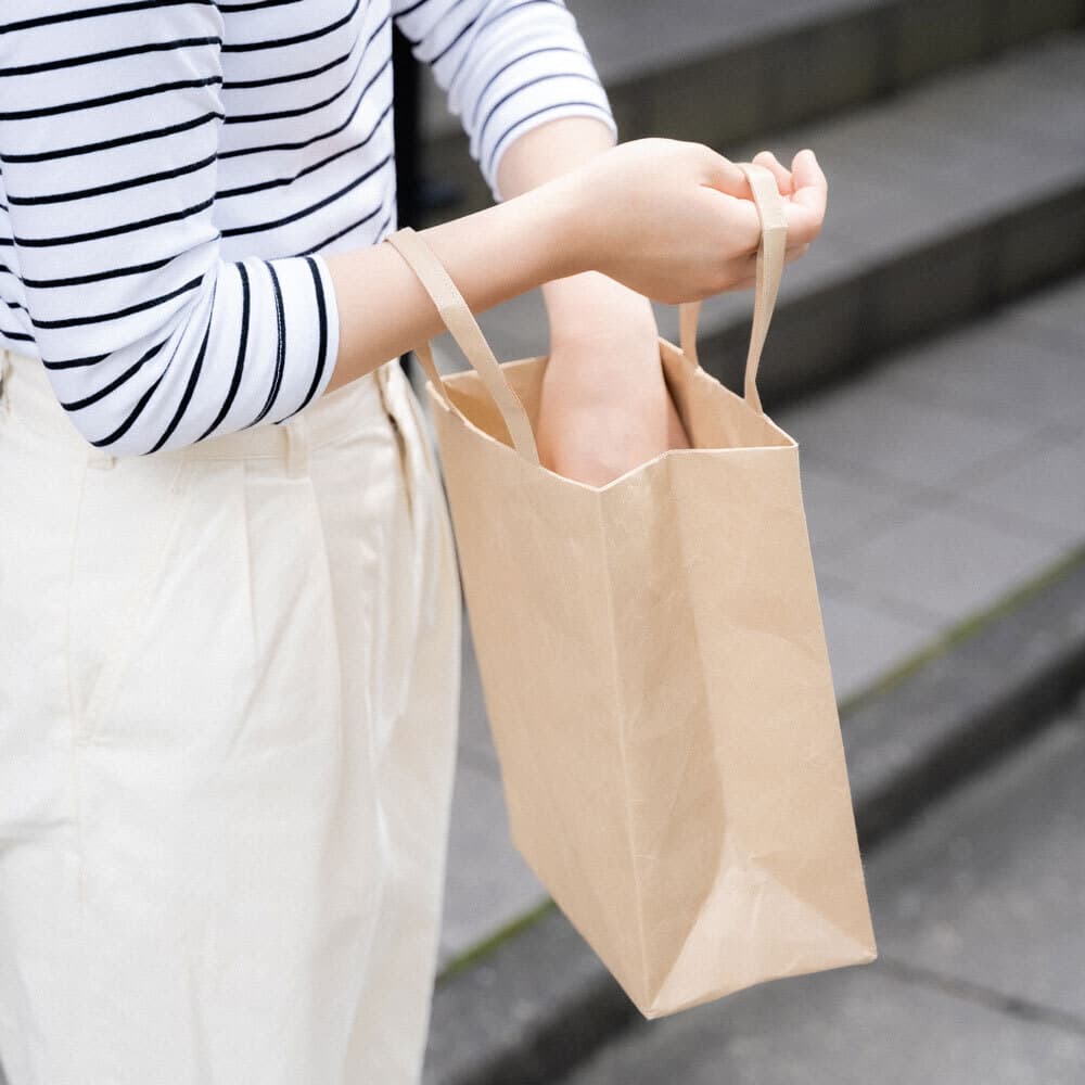 手触りが優しく、耐久性があって、水にも強い。それが新しい和紙、ナオロンで出来た「SIWA バッグ」の特徴。雨になってもへっちゃらで、耐荷重5キログラムと、重いものもしっかり持ち運ぶことができる、あなたの毎日の生活でお役に立つことができるバッグです。