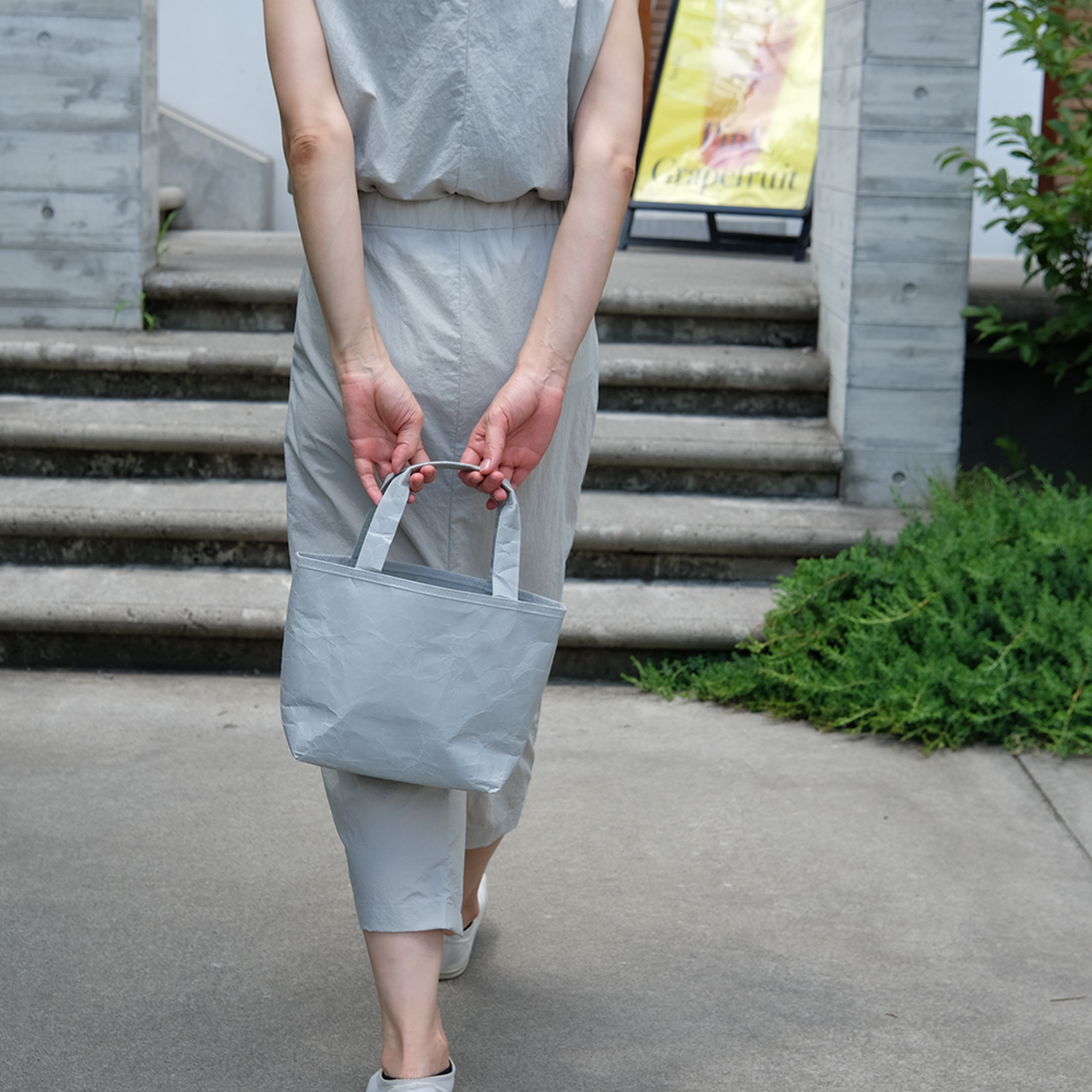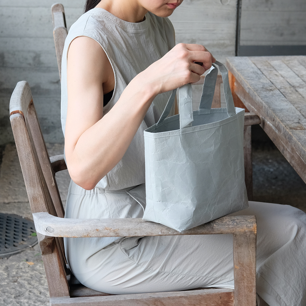SIWAトートバッグの中で最小サイズ。お弁当の持ち運びやお散歩、ちょっとしたお出かけにも最適な「SIWA ミニバッグ」。あたらしい和紙、ナオロンの特徴を備えた、風合いが良くて耐久性のあるバッグです。