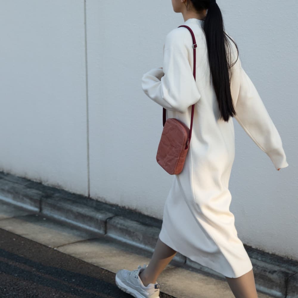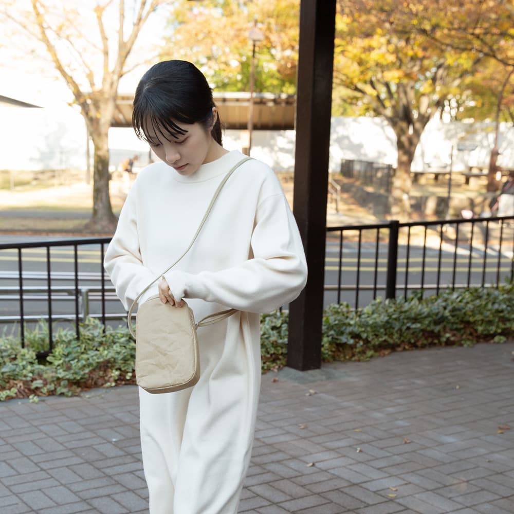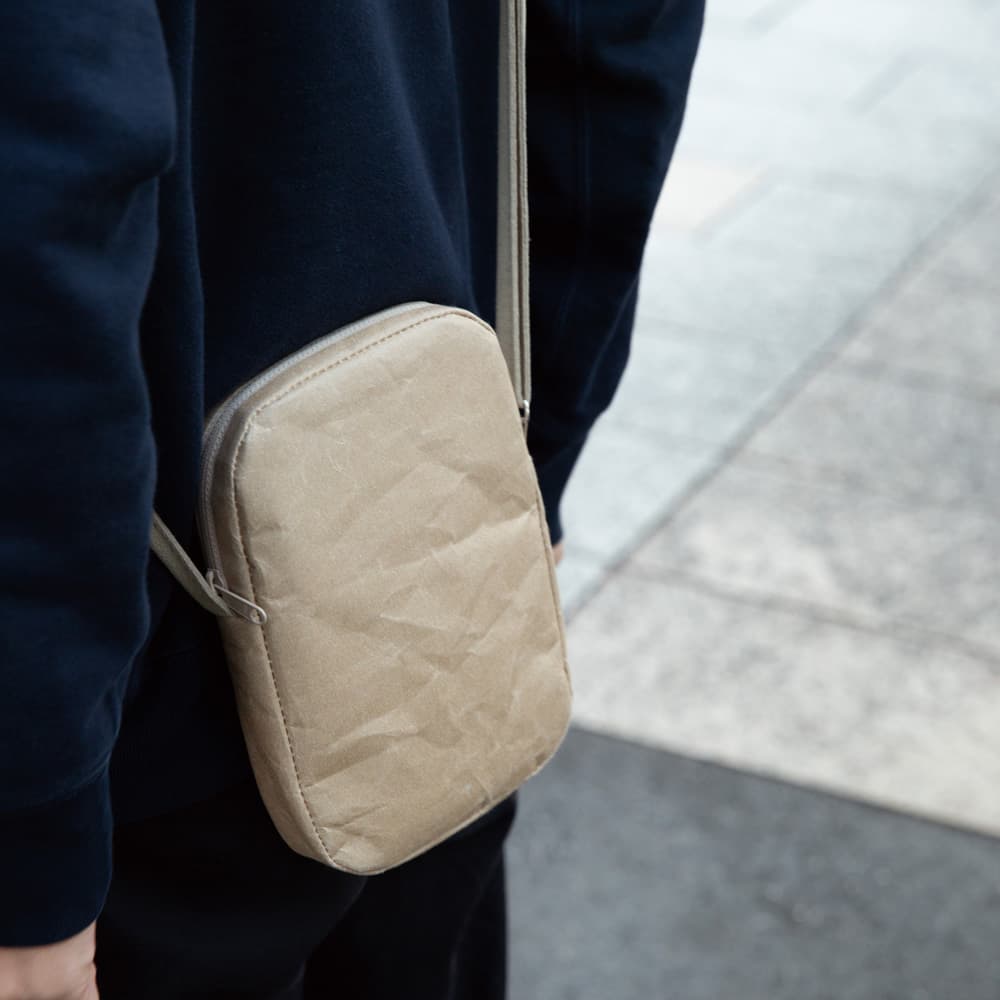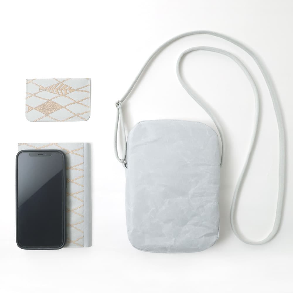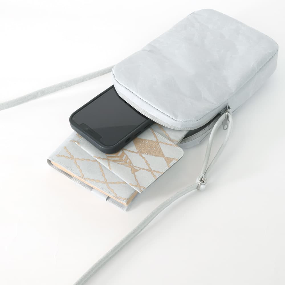 わずか50グラムと軽快なポシェットですが、スマートフォンの収納はもちろん、文庫本サイズの小物の収納にも対応しています。肩掛け、斜め掛けができます。