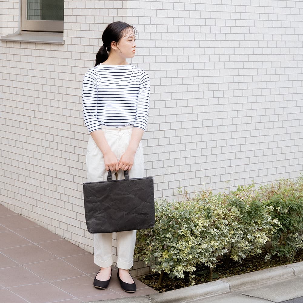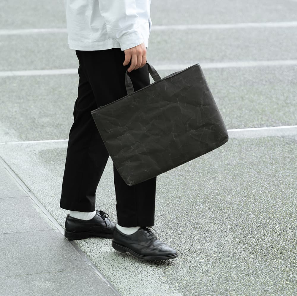 そしてその強度は、なんと耐荷重5キロから10キログラム。実際にこのサイズのバッグに10キログラムのモノを入れると持ち上げるのも大変なくらいですが、重量のある書籍や資料の携帯も可能な安心感です。