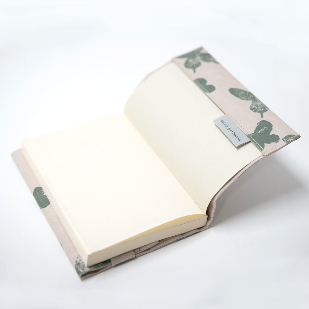 本の厚さに応じて調節ができる折り返しのバンドが装備されています。これによって少し厚めの3センチ程度の厚さのものにもしっかり対応。文庫本サイズの手帳のカバーとしてもご利用ください。