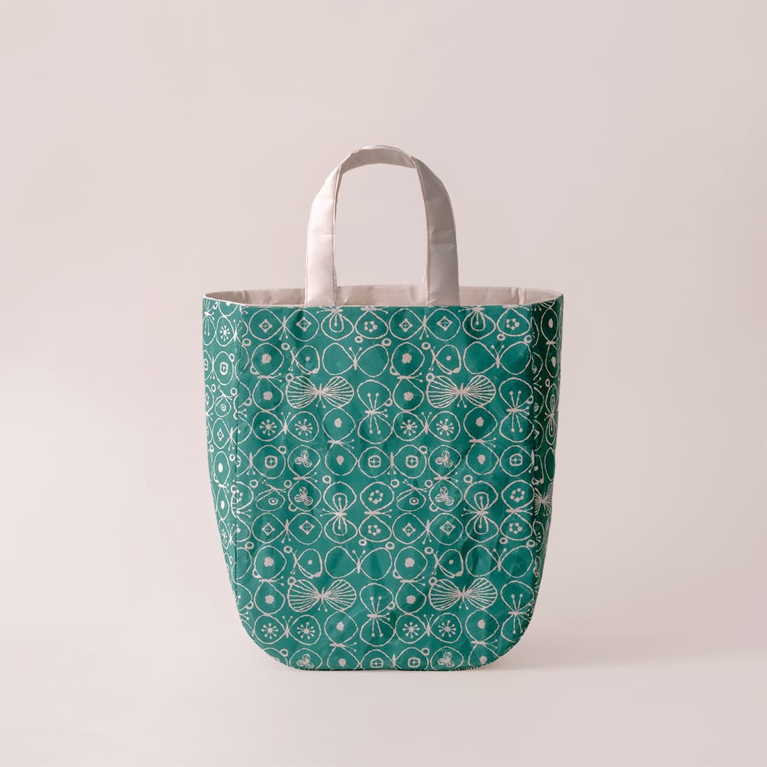 今回の企画では、素材であるナオロンとの相性も良いシルクスクリーン印刷を採用し、mina perhonenさんの繊細な柄と色を1枚1枚手刷りの印刷で表現しています。素材に馴染みやすい印刷技法を使用することで、SIWAならではの素材の経年変化ともに移ろい行く柄の変化も楽しんでいただけます。