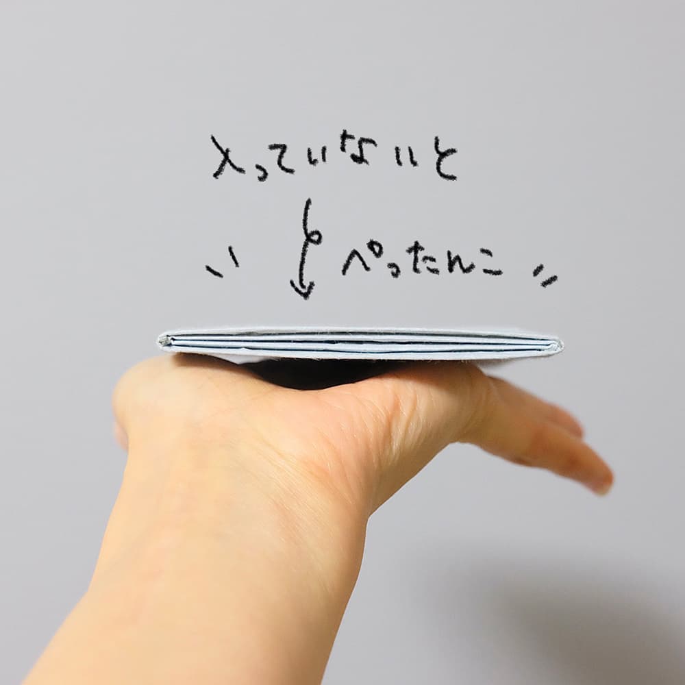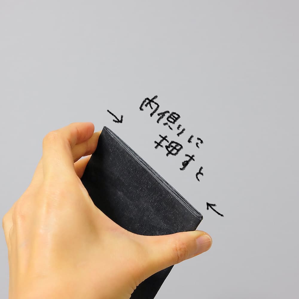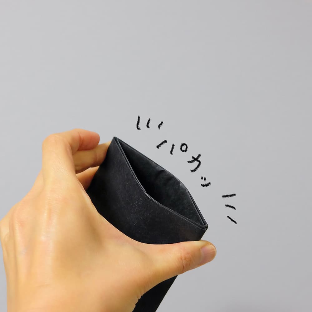 重量はわずか13グラム。繰り返しお使いいただくことができて、使う度ごとに風合いが増してきます。ひとつひとつ、ミシンによって丁寧に縫製が施されていて、縫い目が目立たない仕上げになっています。また素材の強度をいっそう高めるため、袋縫いの二重構造になっています。