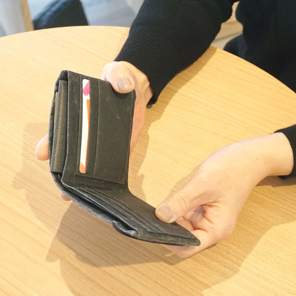 クレジットカードも紙幣もきちんと収納できて、コンパクトに持ち歩きできる財布です。