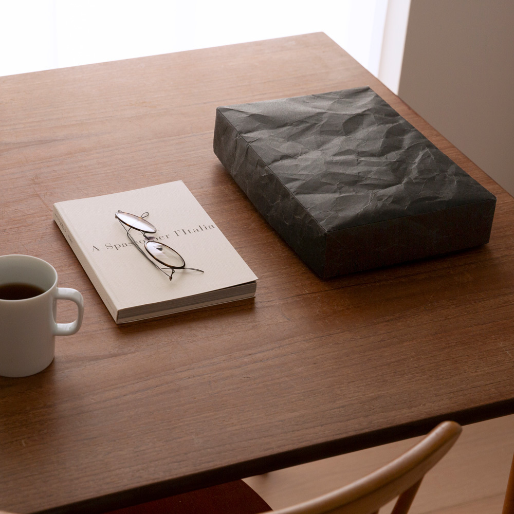 It is made from naoron, a new material that has taken over the Japanese paper technology of Ichikawa Daimon in Yamanashi, a region with a thousand-year history of Japanese paper production. That is our product, SIWA.The paper is pleasant to the touch, light, soft and supple in the hand, but also very strong. It is also water-resistant and tear-resistant.