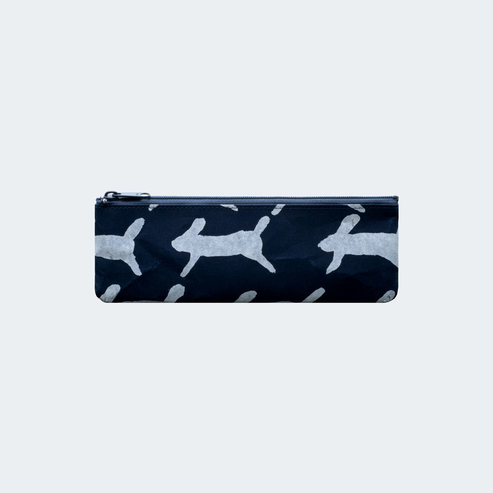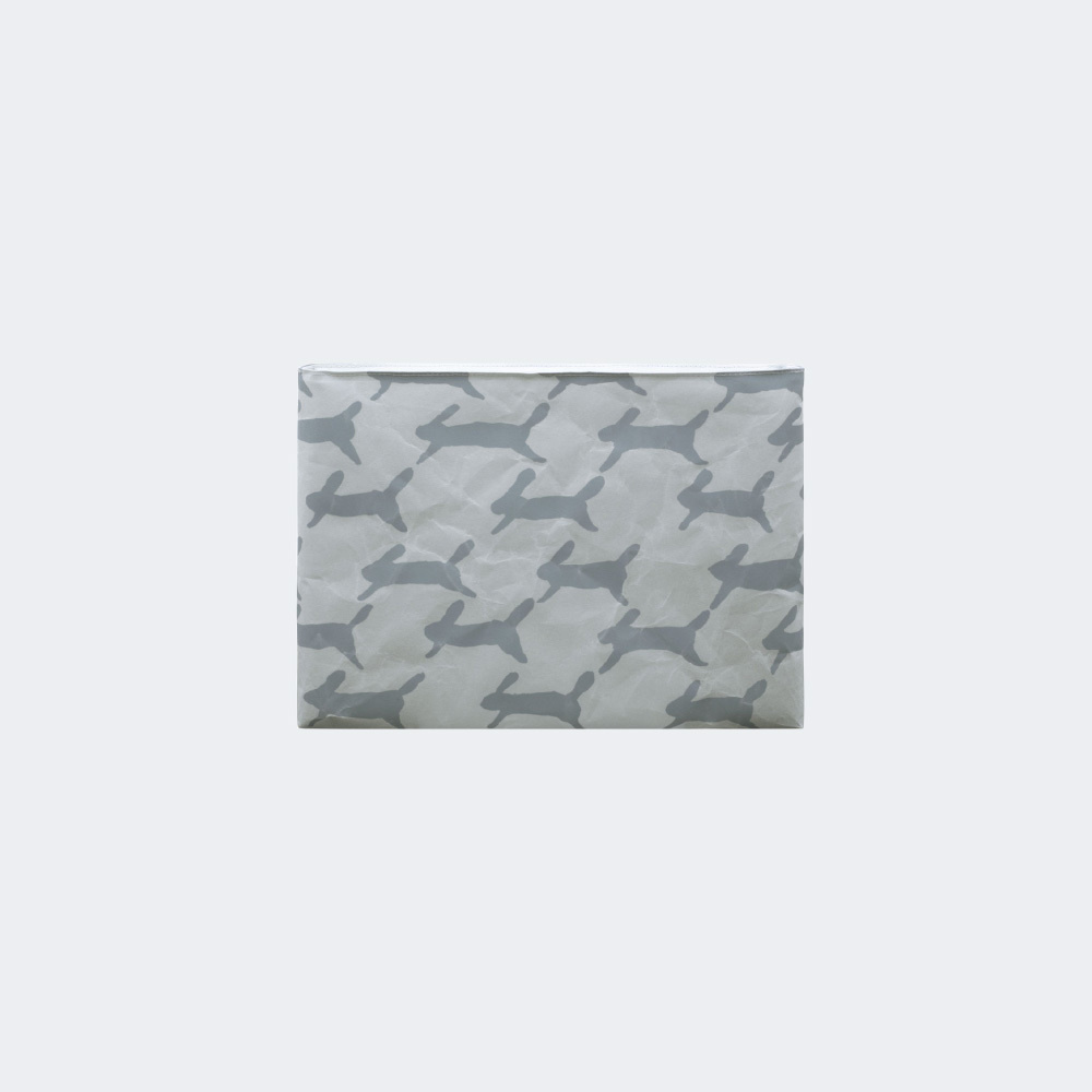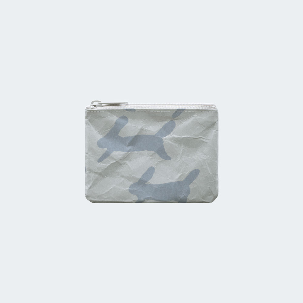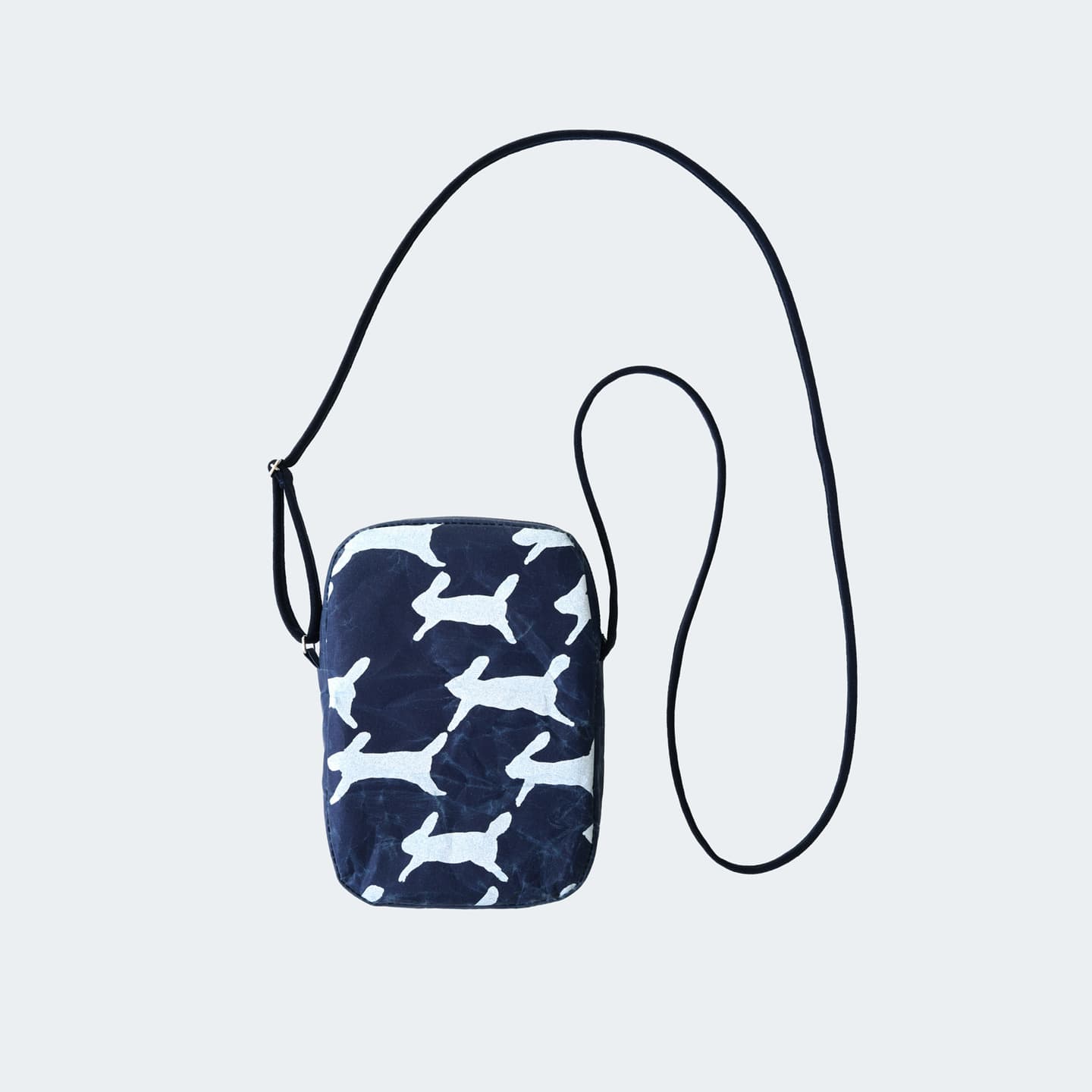 千鳥格子のような連続模様を、うさぎで描かれた図案です。手描きから生まれた絵の具の濃淡やにじみ、かすれもそのままに表現されています。うさぎたちが楽しく駆けていく様子がうかがえる軽やかで優しいデザインです。